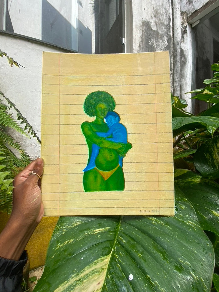 A portrait of motherhood not as a role, but as a sacred cycle of holding, carrying, and becoming. Painted in Brazil, this piece honors the quiet strength, memory, and the everyday documentation of love.